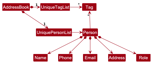 Tag list in the AddressBook, which Person references. This allows AddressBook to only require one Tag object per unique tag, instead of each Person needing their own Tag objects.